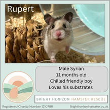 Use our Contact us Form, Email us (click here) or Contact us on social media to enquire about the hamster you would like to adopt